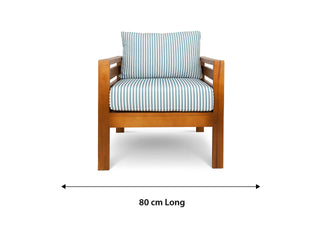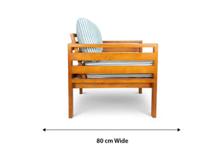 The Classic patio single seater couch pairs a modern, linear design with robust materials. Each couch consists of a pine wood frame that has been sealed with an eco-friendly and water-based product - as well as a set of cushions made from fully outdoor-rated canvas.