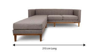 Introducing the Shelley Three Seater L Shape Couch, an opulent and elegant L shape sofa designed to make a statement in your home. The beautifully fluted backrest and frame, coupled with high armrests and graceful lines, create a showpiece that is both stylish and comfortable.